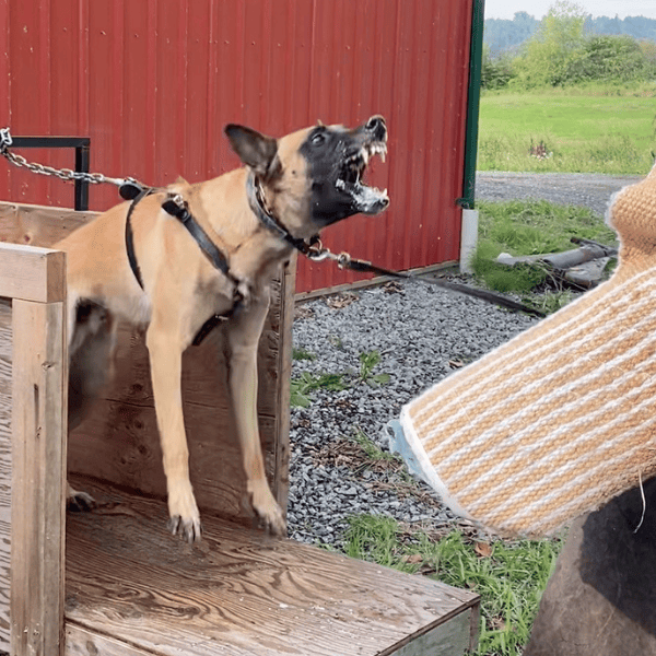 Odin is a social, stable male with a strong dominant body and mind. He has excellent food drive, very high prey and possession drive, frustration and reactive aggression. He has an extremely calm, firm possessive grip on anything that is in his mouth from the sleeve to the dumbell. He is a serious male with a beautiful showy body
